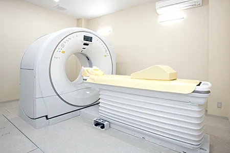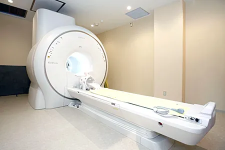 当院では最新の超電導MRI装置を導入しました。高い磁場強度(1.5T”テスラ”)により高画質、短時間での撮影が可能です。