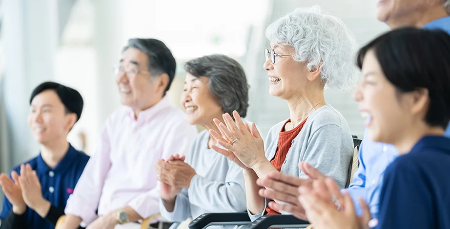 皆で食事を食べたり、レクリエーションを楽しんだりしています。