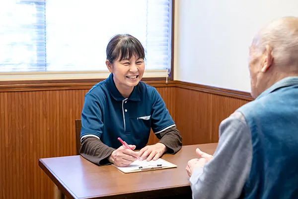 生活相談員がご利用者樣、ご家族樣の悩み事の相談に応じています。なおプライバシー保護の観点から相談室を別個に設けています。