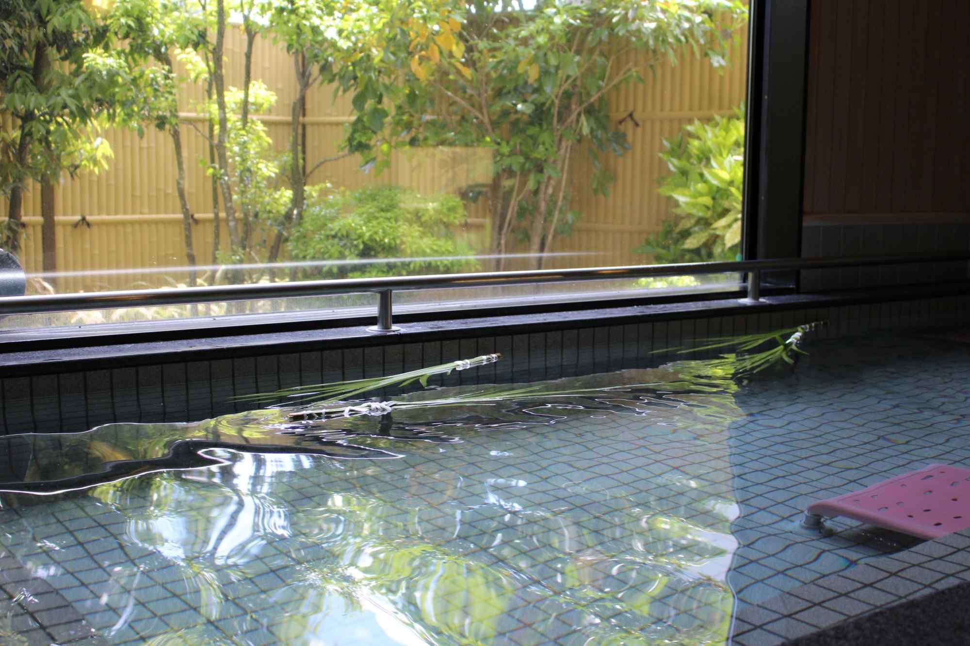 和のフロア中心の柱に笹を括りつけ、皆さんの願い事を短冊に書いて