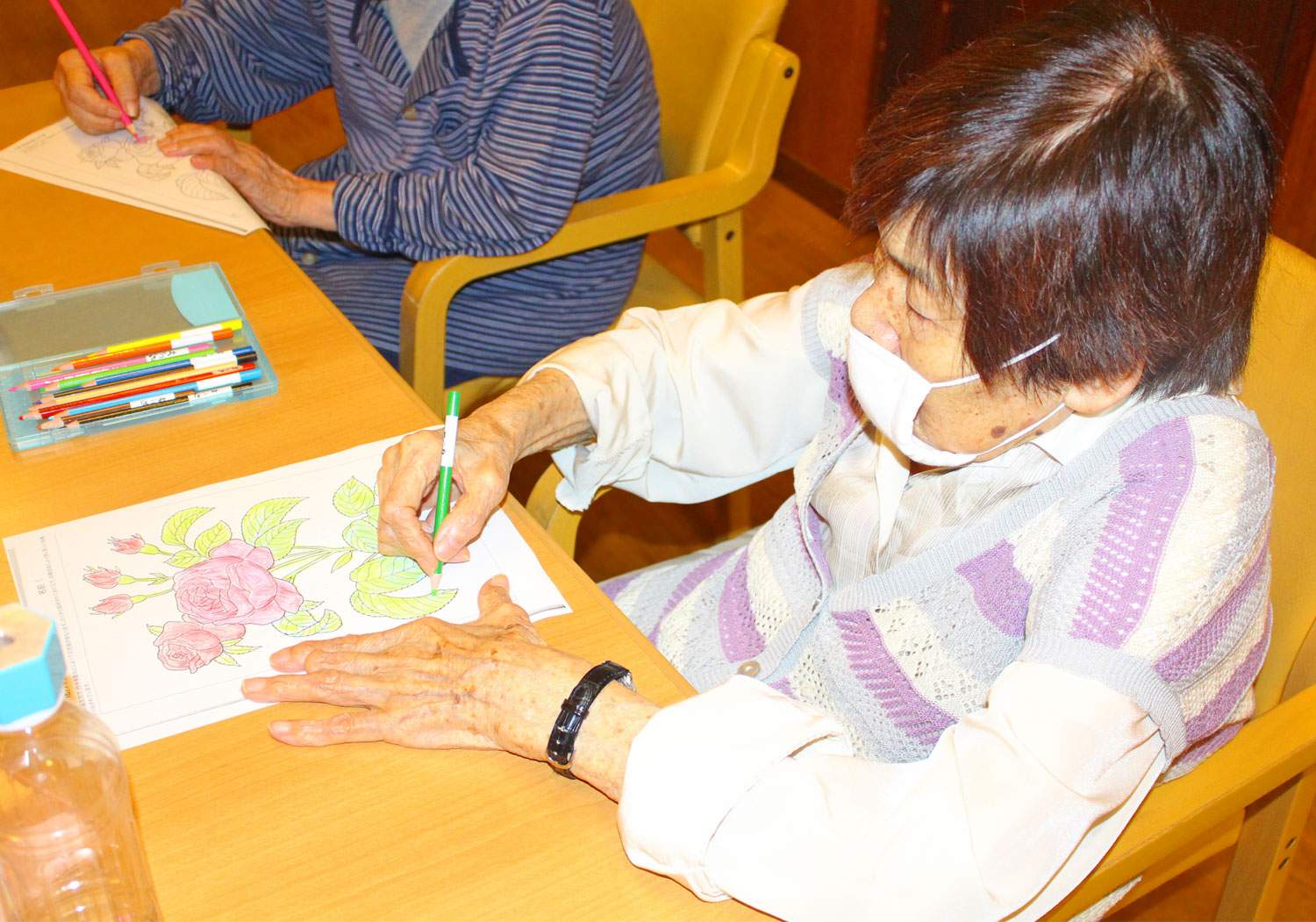 小さい頃、よく「色塗りをしていたの」と話しながら皆さん、笑顔で取り組まれています😊