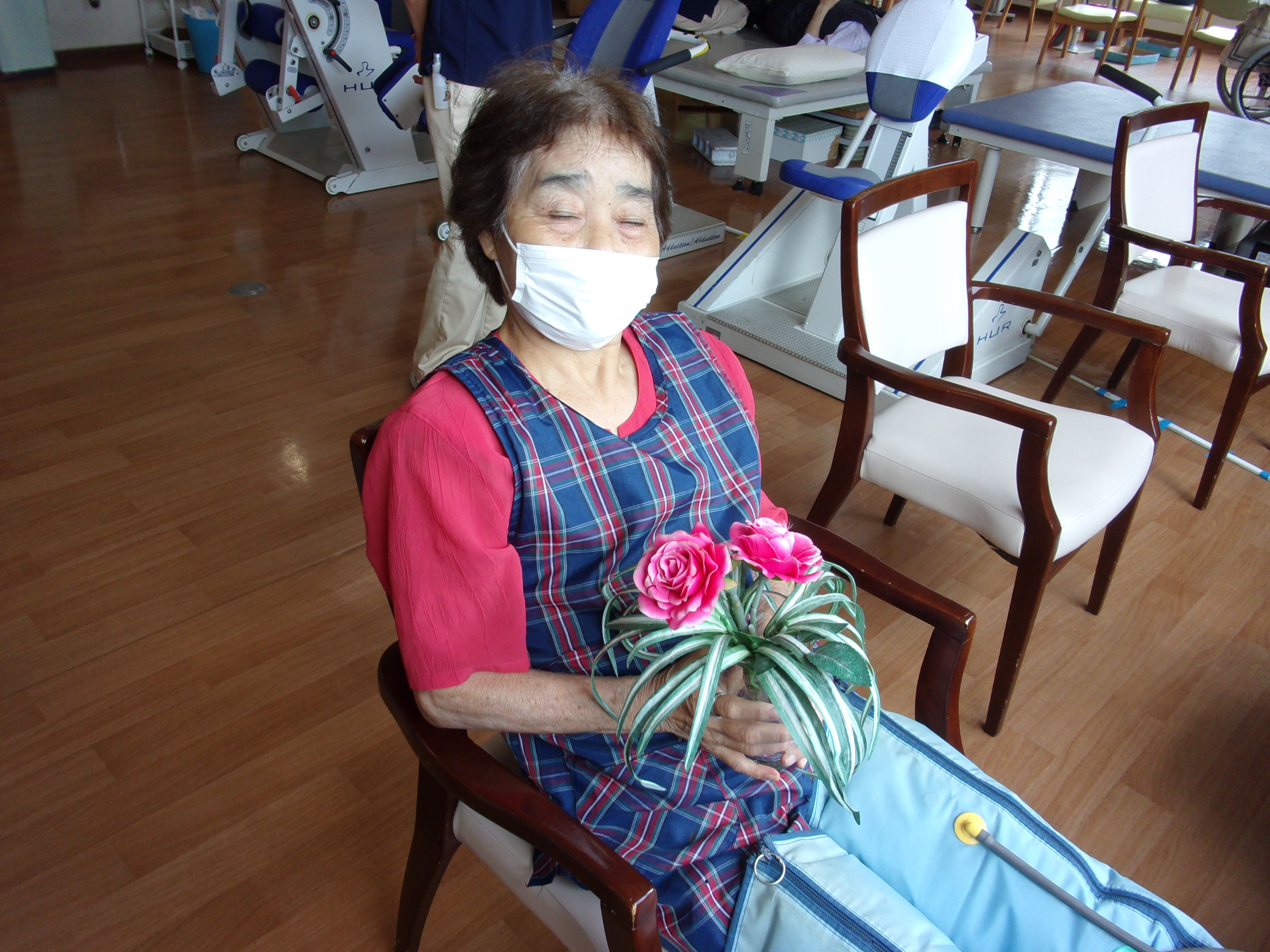 この写真だけを見たら剣道の先生って感じがしますが、木刀を杖代わりに使用している利用者さんです