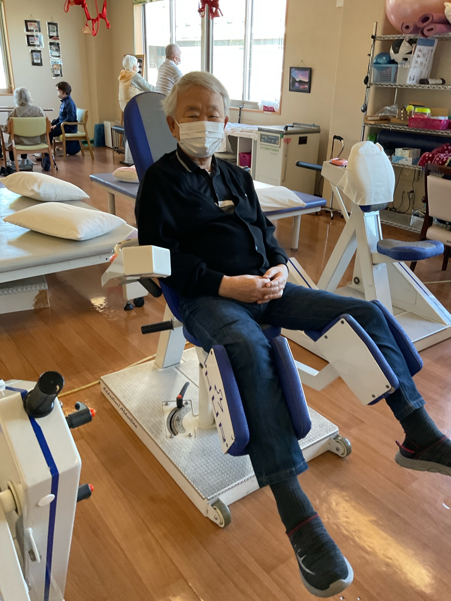 リハビリスタッフと歩行訓練をしているHさんの様子です