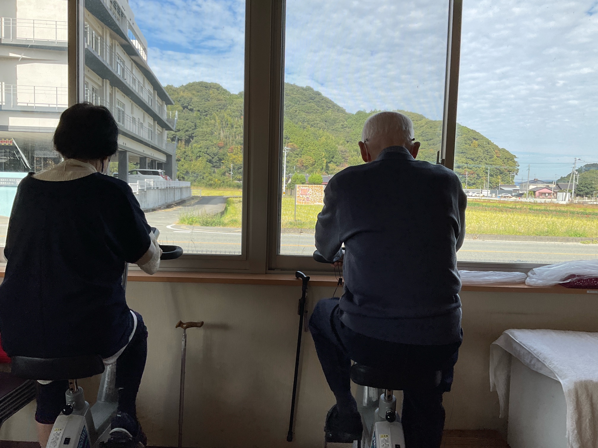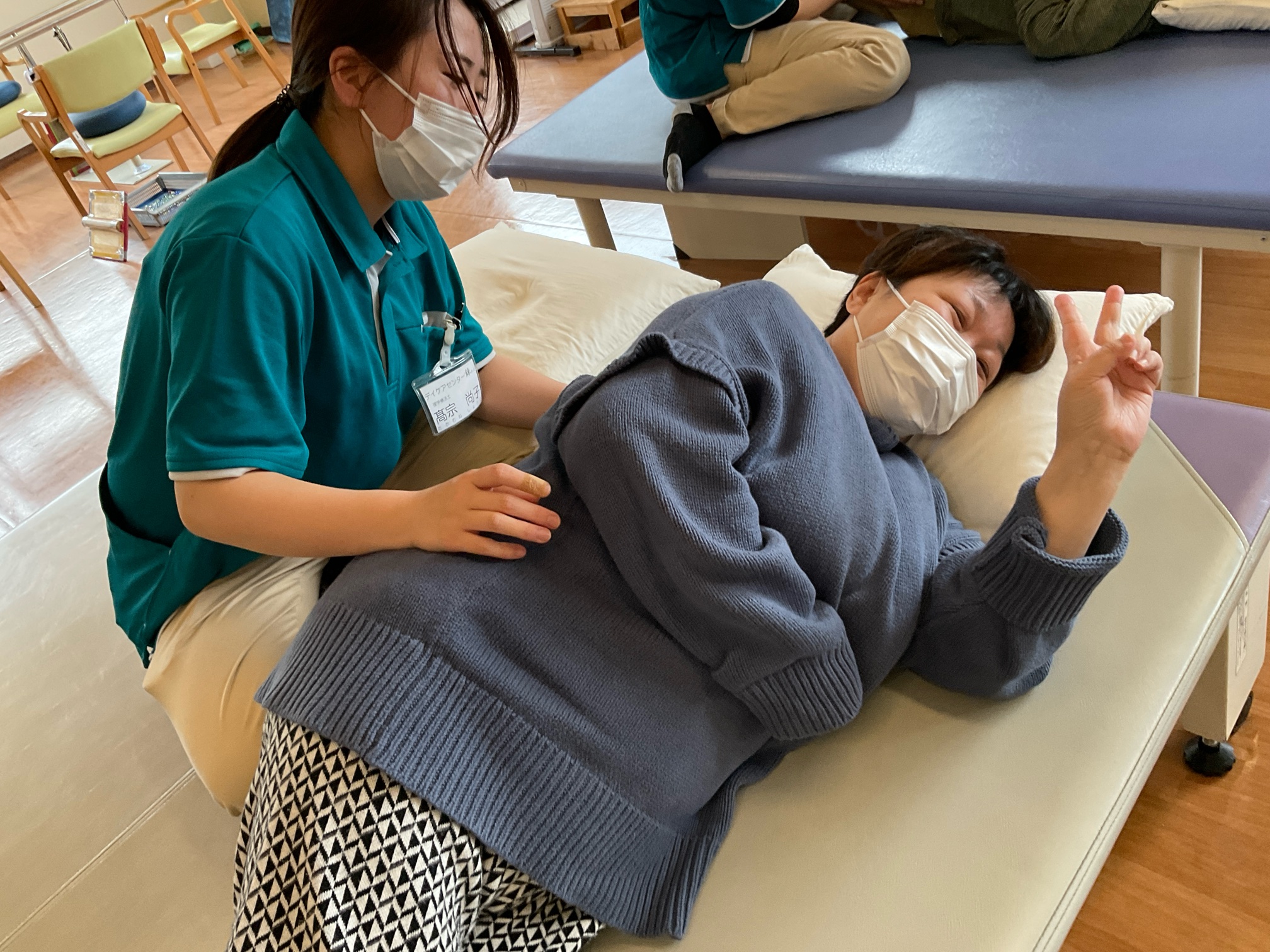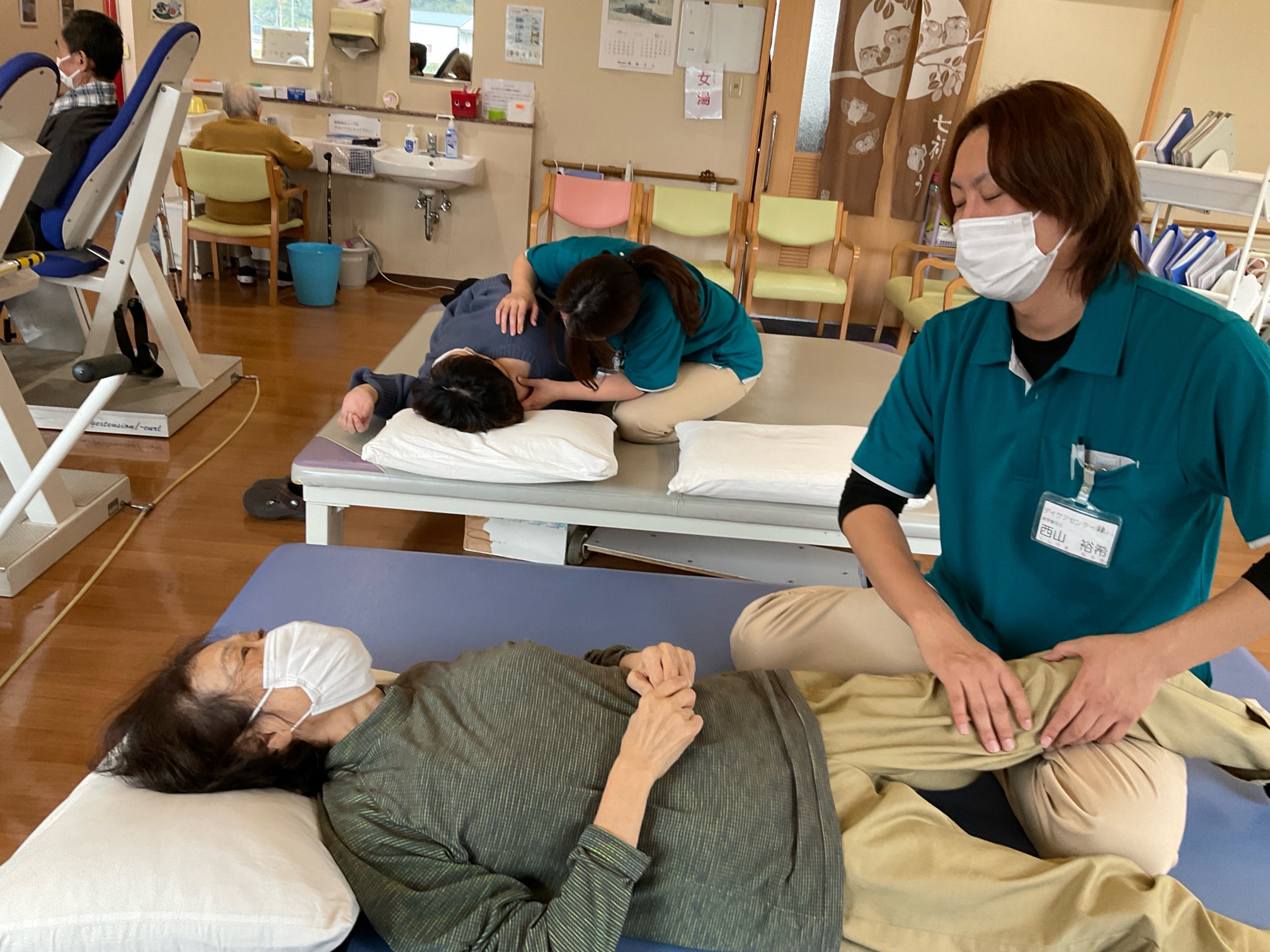 西山さんとT様楽しくお話ししながらリハビリ受けておられます