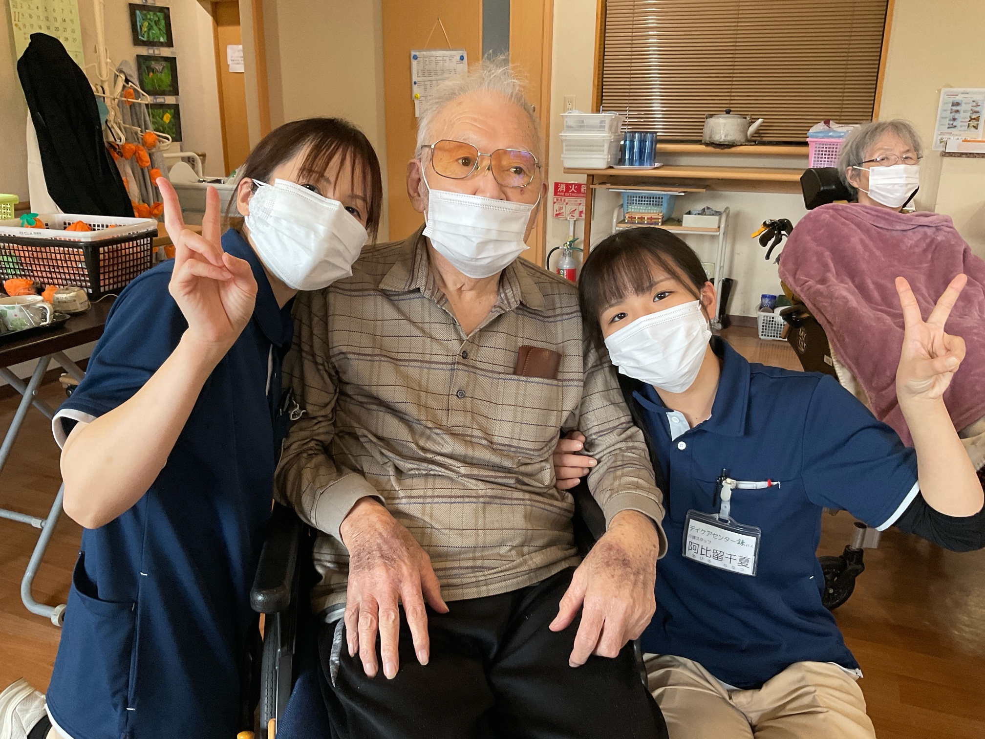 よ~く見るとちょい真ん中の奥にいる介護スタッフの阿比留ちゃんが